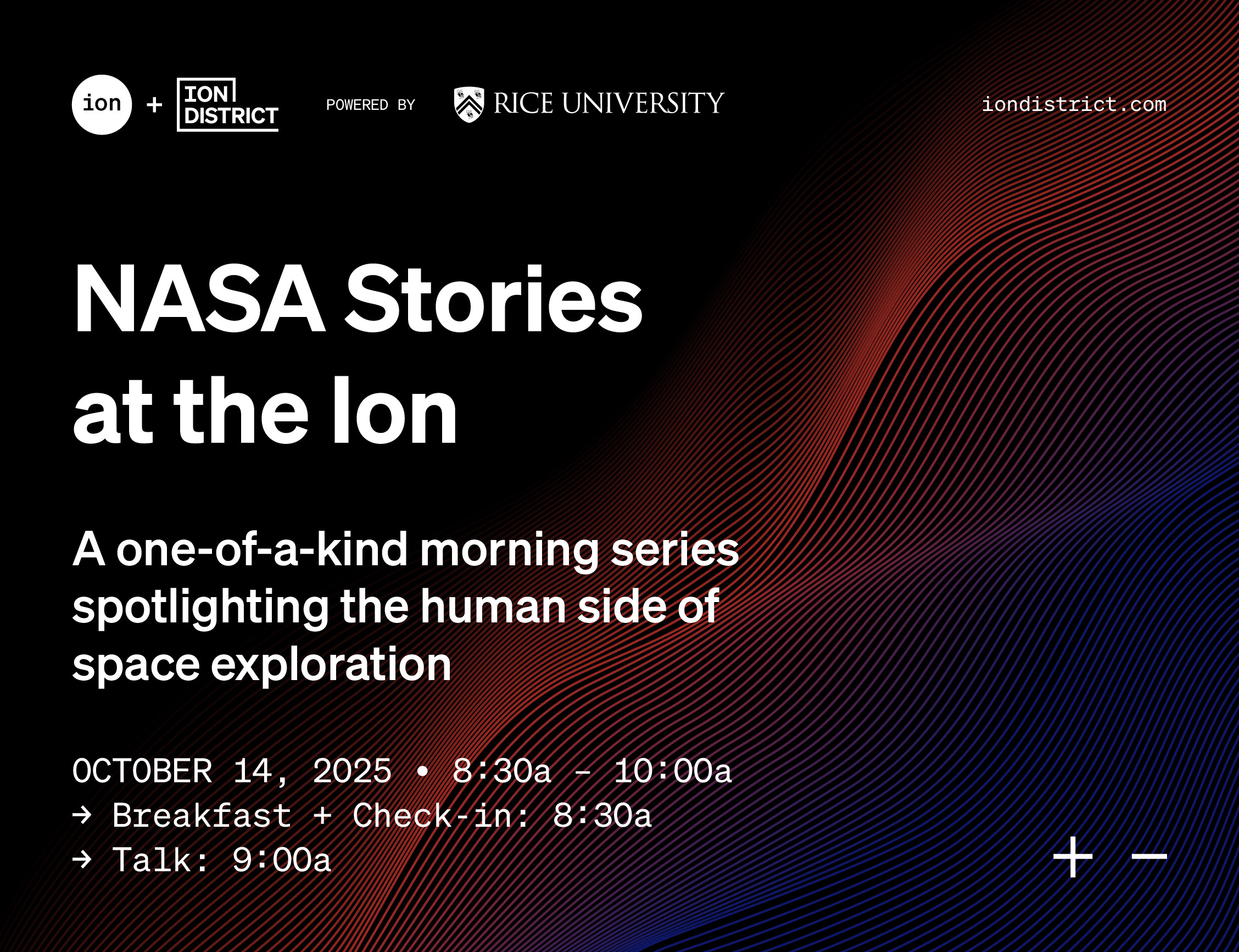 The Ion is proud to present “NASA Stories at the Ion”—a one-of-a-kind morning series spotlighting the human side of space exploration. In October, we’ll announce the speaker soon, but you’ll hear from one of the top International Space Station leaders!